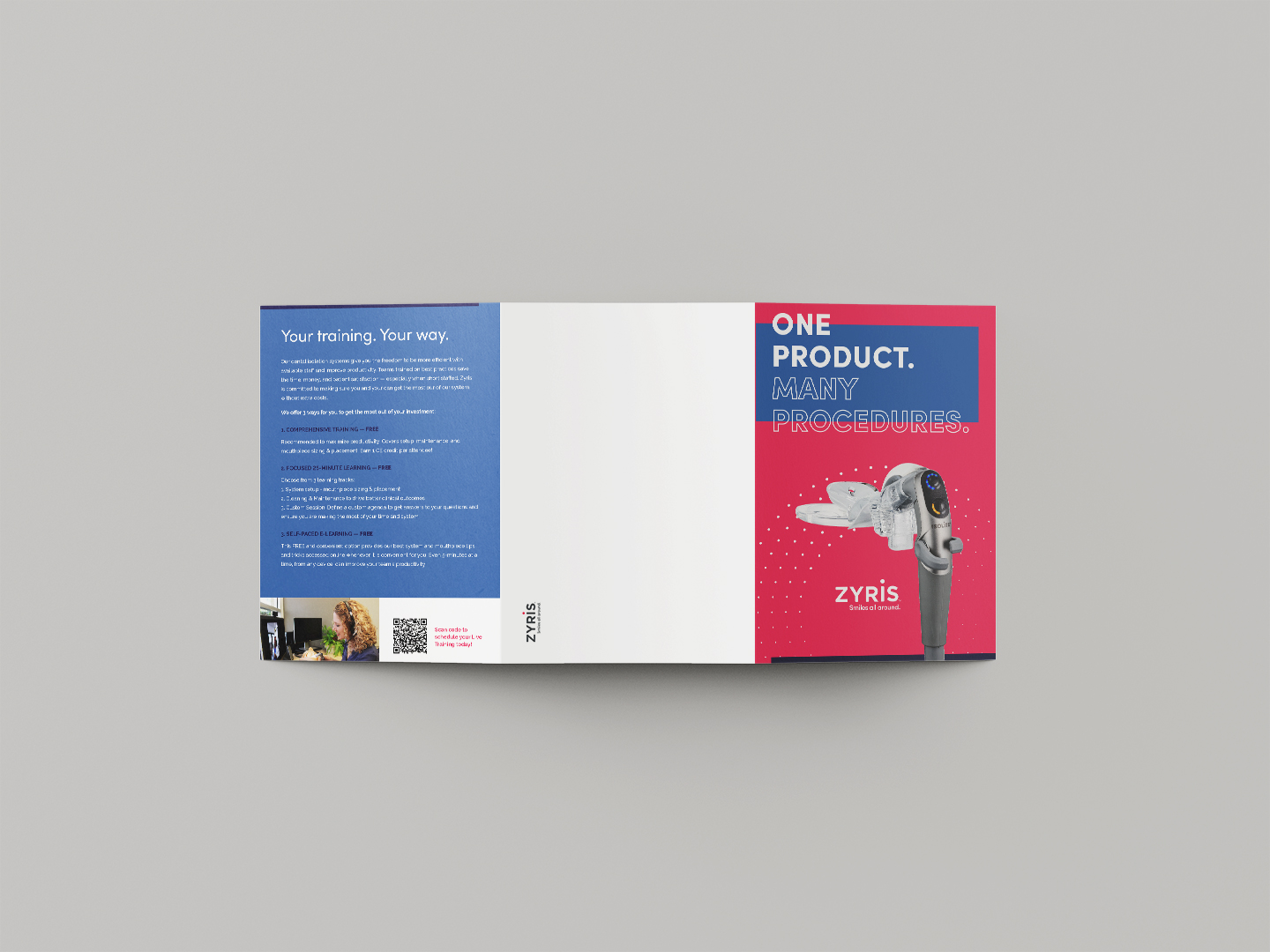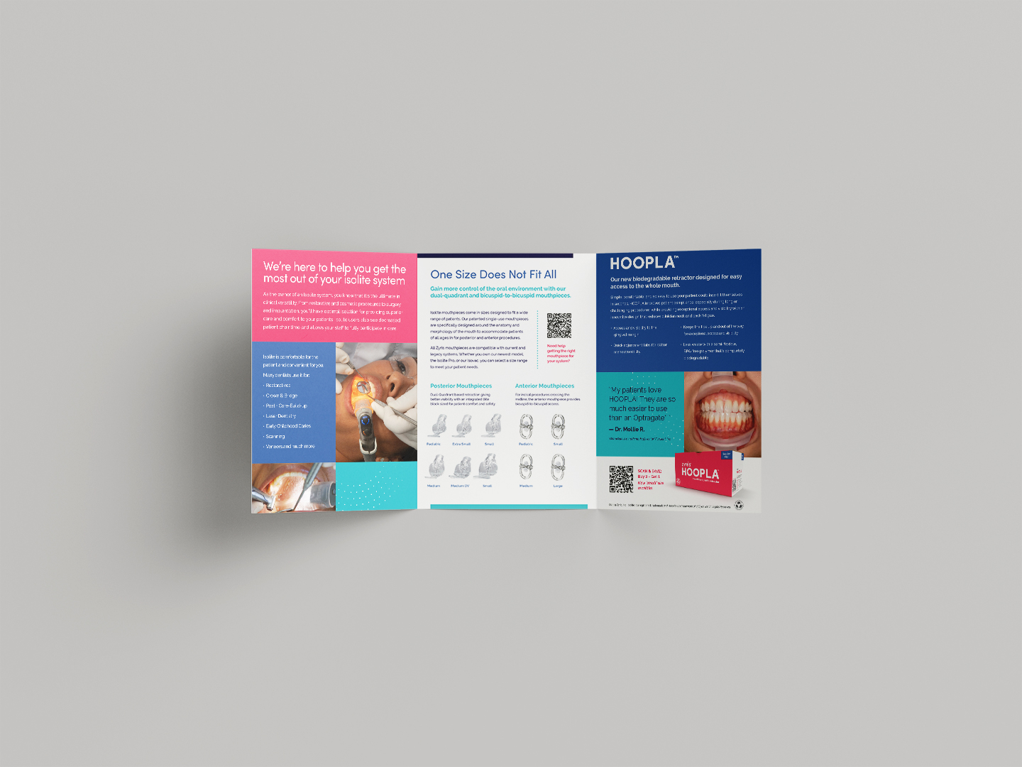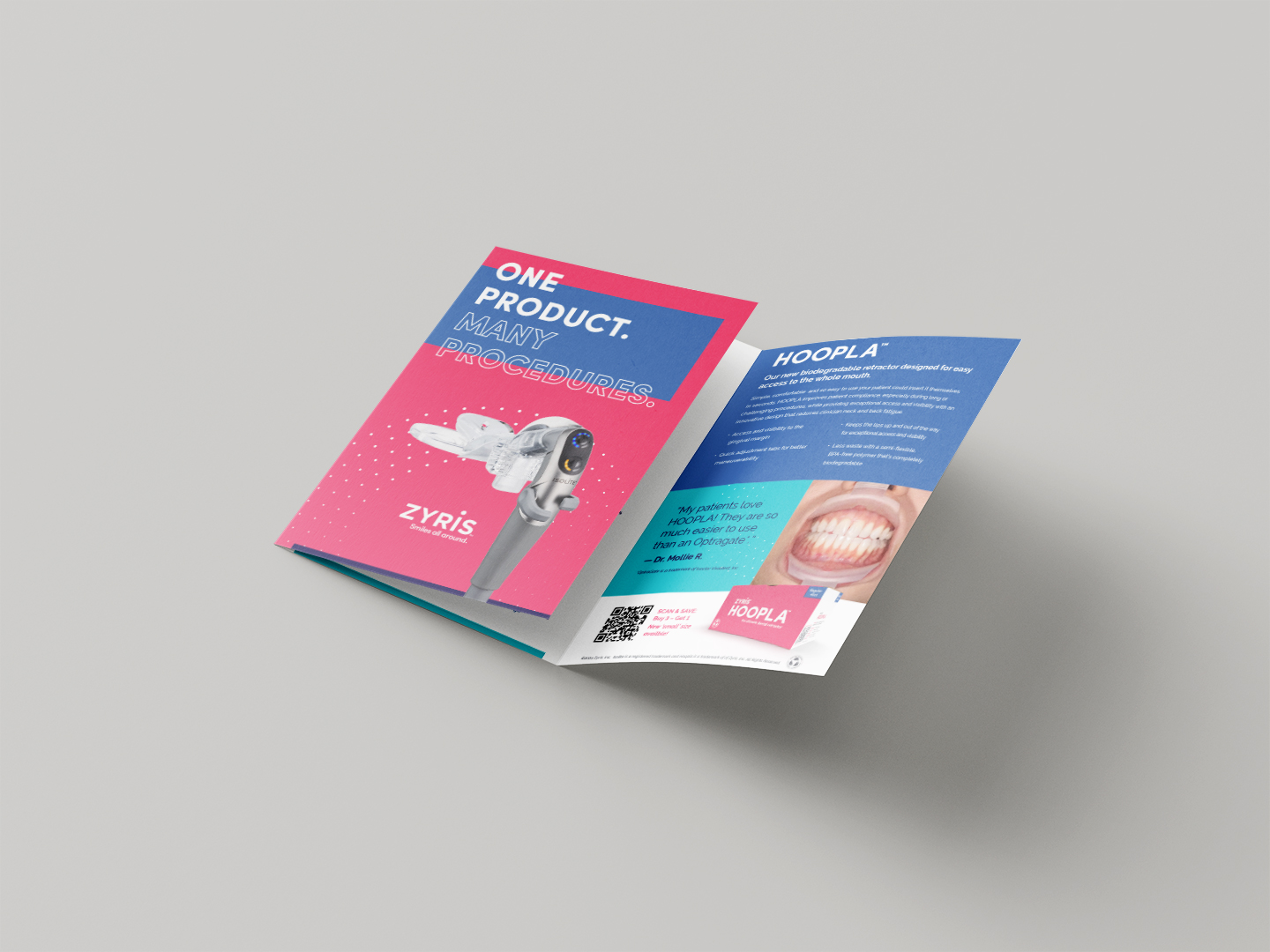 This is a trifold mailer created for a dental product, Zyris Isolite, with the goal to reengage customers who have stopped ordering from Zyris, both directly and through distributors. Bright colors and large photography were used in order to grab the viewer’s attention, along with several callouts to break up the text.