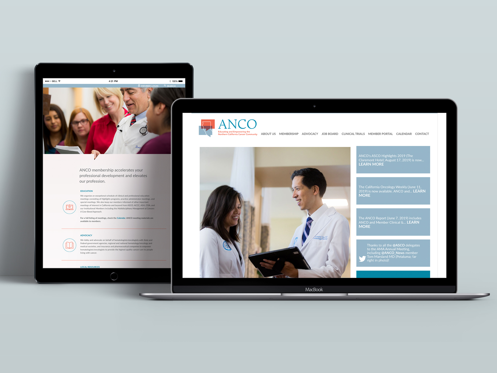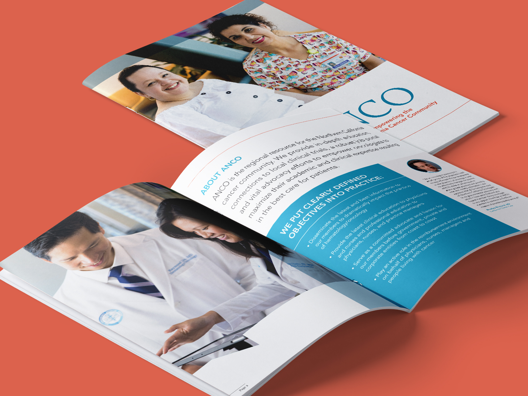 Branding materials designed for the Association of Northern California Oncologists. ANCO needed new branding to reflect their mission of providing education and resources for oncologists in the northern California community. I came up with a mark that conveyed communication and a sense of community with the overlapping shapes, with the outline of northern California overlaid on top to represent the location. The branding was applied to their membership brochure, signage and a new website. The idea was to incorporate elements from the logo as vehicles to display imagery and content in a clean and unique way. Also a suite of icons was created for easier identification of the various offerings.