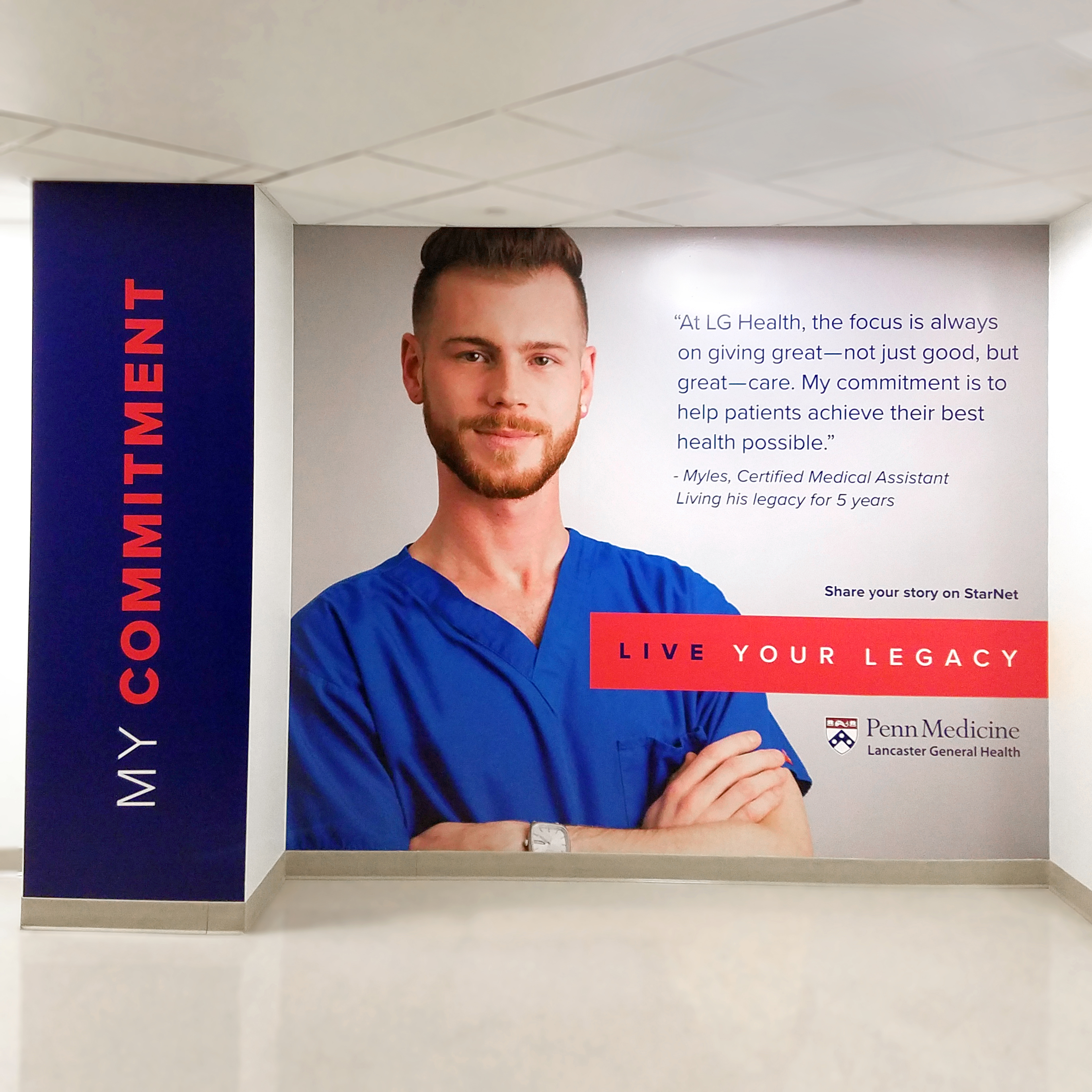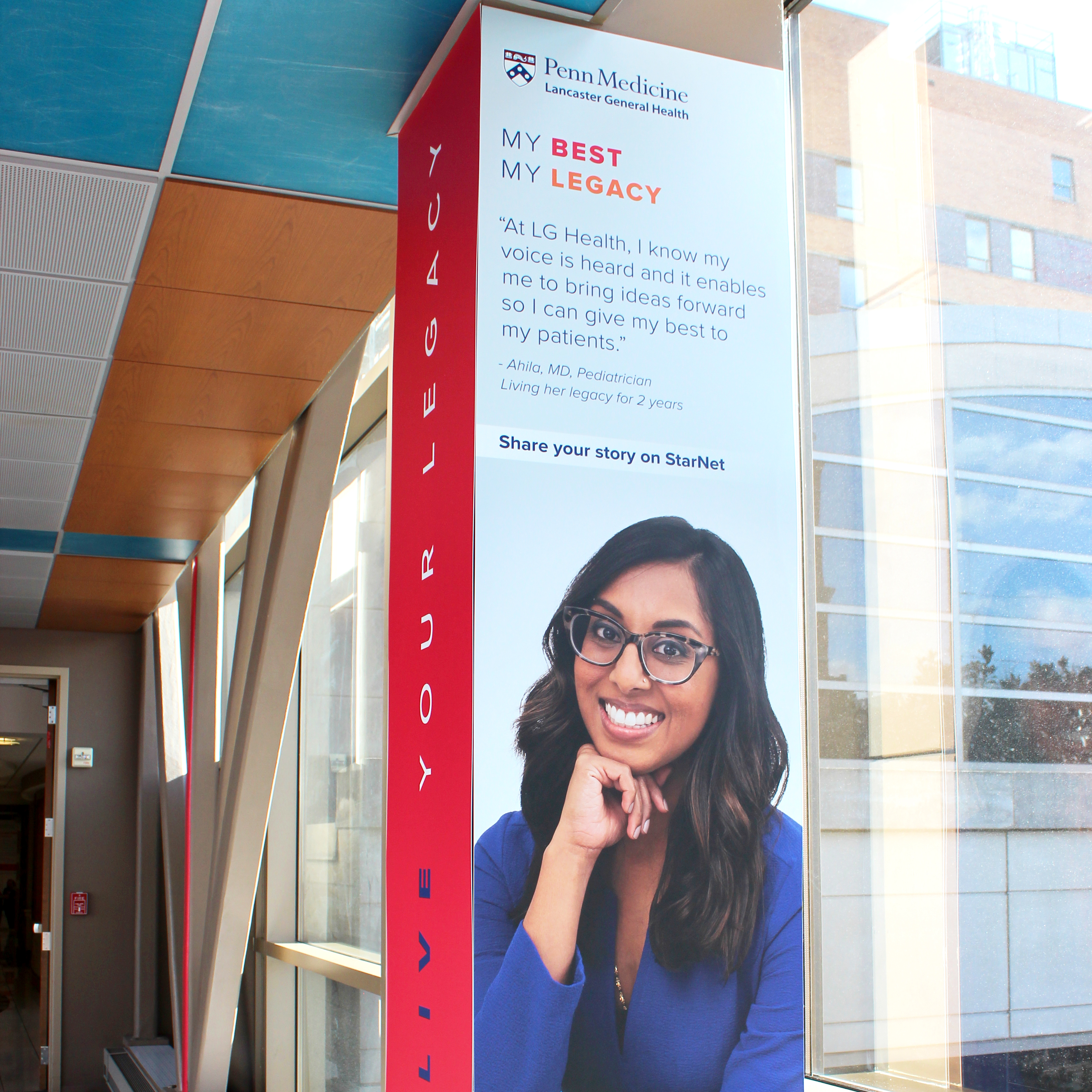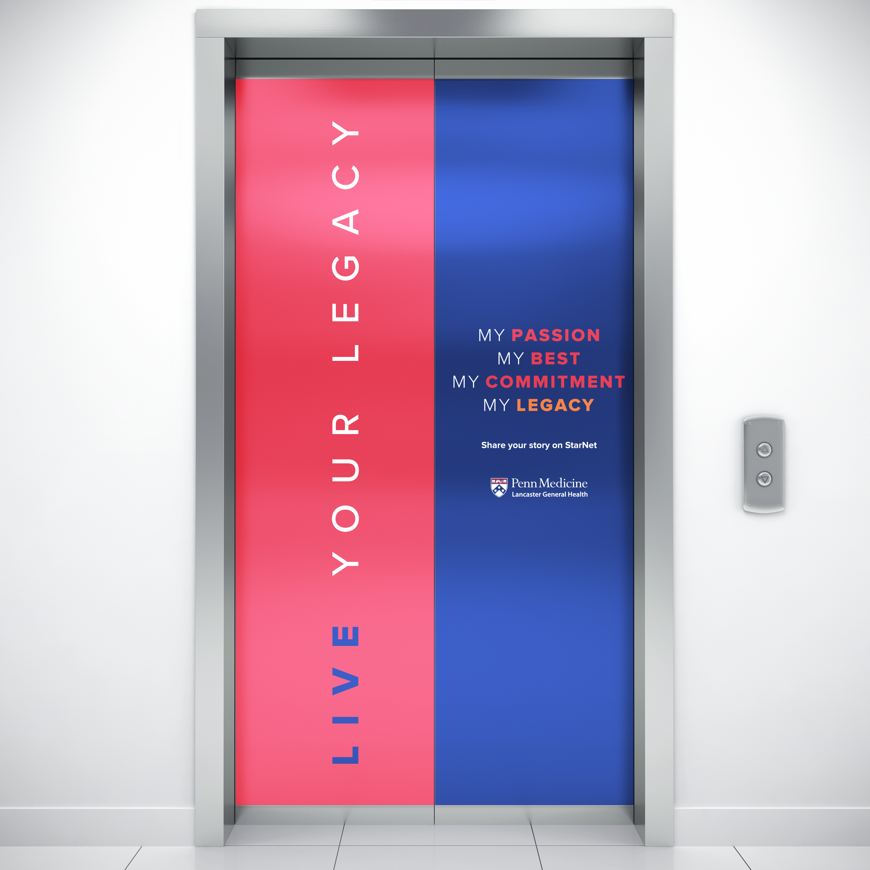 This was an employee engagement campaign created for Lancaster General Health with the goal of retaining current employees and eventually recruiting new ones. The idea was to create impactful and emotive graphics and messaging throughout the employee facing areas of the hospital to inspire and encourage employees to share their stories of how they live their legacy at Lancaster General Health on their intranet called StarNet.